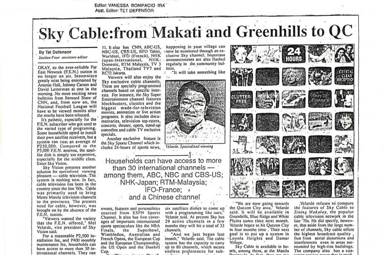 Sky Cable: from Makati and Greenhills to QC By Tet Defensor Section Four Assistant Editor OKAY, so the ever-reliable Far East Network (F.E.N.) station is no longer on air., Insomniacs…
